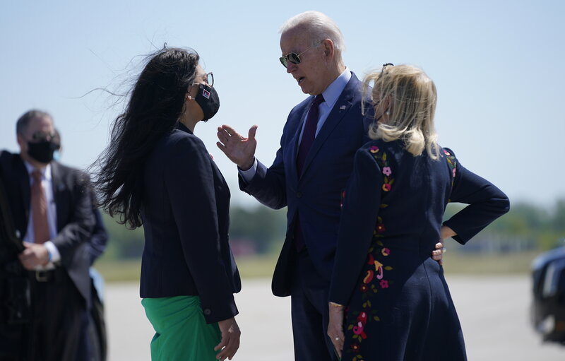 Speaking at the Ford plant after the brief confab with Tlaib, Biden praised the Detroit congresswoman for her attention to human rights.