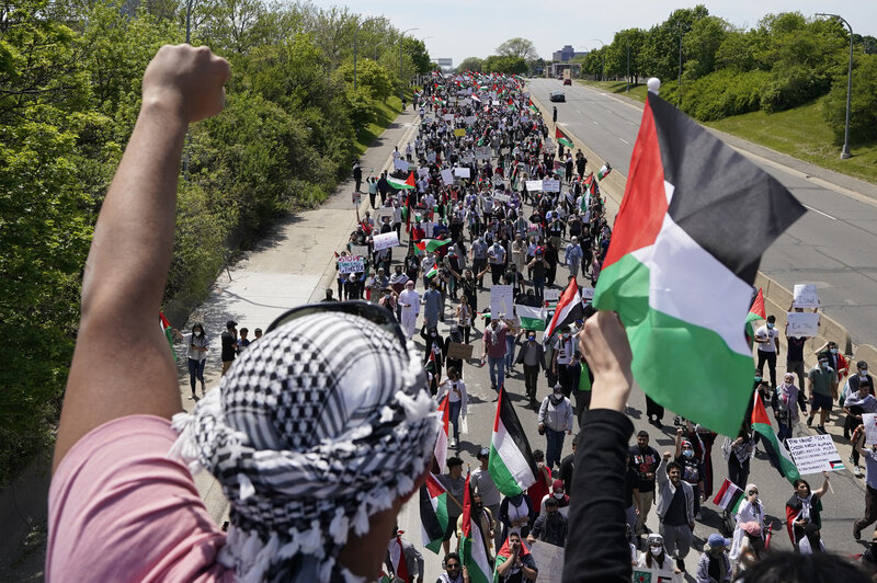 Dearborn is home to a sizable Arab American population, and protesters took to the streets Tuesday in the city to voice support for Palestinians.