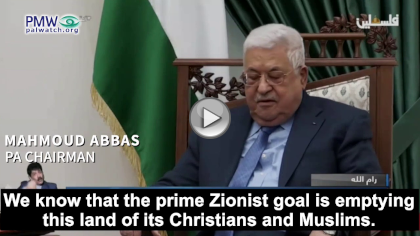 PA Chairman Abbas has stated that Christians and Muslims are united in “fighting” against the common “enemy” – i.e., Israel. He reiterated a common PA libel that Israel's goal is to “empty the land” of Christians and Muslims, and therefore they must join forces in getting rid of the Jews – because Christians and Muslims “have been the owners of this land since this land’s existence”: