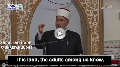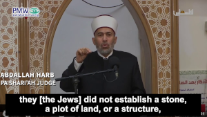 PA Shari’ah Judge Abdallah Harb: “This land, the adults among us know, they [the Jews] did not establish a stone, a plot of land, or a structure, as they brought all the archaeologists [here] to prove that this land is theirs, that it is ‘The Temple Mount,’ that it is ‘the promised land.’ They didn’t succeed in this... They are oppressors, they are liars, and the right is ours. Ours is the true unblemished and undisputed historical narrative. They are the people of falsification and untruth.” [Friday prayers and sermon at a mosque in Ramallah, Official PA TV, Jan. 14, 2022]
