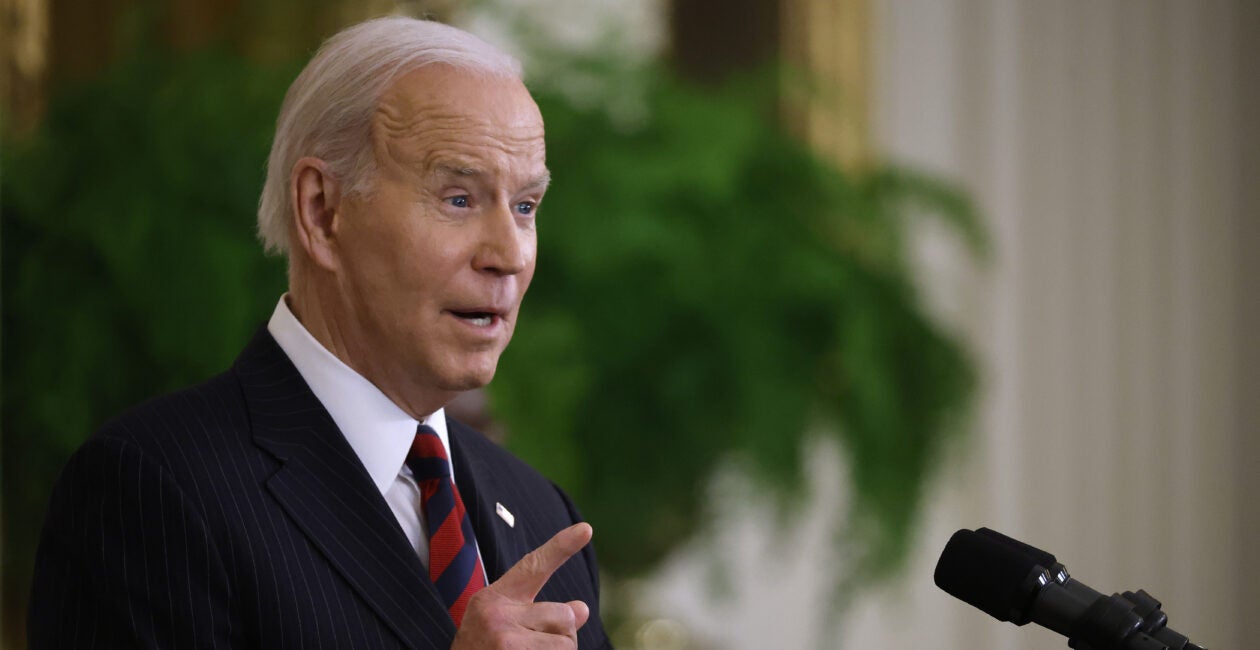 President Joe Biden addresses an event to celebrate Equal Pay Day in the East Room of the White House on March 15 in Washington, D.C. (Photo: Chip Somodevilla/Getty Images)