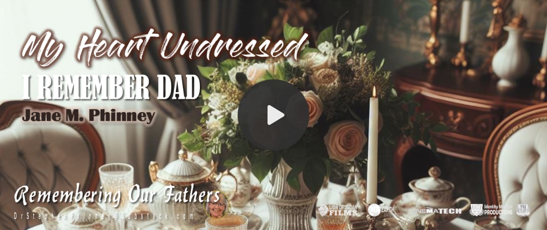 It is an honor to have you as a member of our subscription service! Share today. #4 My Heart Undressed: I Remember Dad.Jane Phinney: The legacy my father passed on to me was alive in my family. I saw it in myself, I saw it in my beloved husband, & I was seeing it’s fruit in the lives of my precious daughters.“I have seen strength, like an oak in the storm…I have felt gentleness, like a golden summer dawn…I have felt protection, like a shelter all around…All from a life that gave me life…All from my father’s love.”I REMEMBER DADWhen I was a little girl, my father & I had our own special game. When he came home from work & pulled in the driveway, I would run out of the house & jump on his back the minute he stepped out of our Pontiac wagon. He was my ride to the house & my kisses were his fuel. Whenever he slowed down or needed extra energy to get up the steps, I’d plant one on his cheek.Dad had a special way of doing things & made memories out of seemingly insignificant events. Saturday night was grocery night & every week there were 3 twin pops, one for each of us kids. When we played rummy or board games, it was Dad’s signal to make popcorn. Nobody else quite did it like he did. His boyhood stories were some of my favorites. Even though I knew them by heart, he told them the same every time, never omitting details. Oftentimes I would ride bike to the lumberyard, where he worked, to visit him on his coffee break. He would greet me like I was someone special & he’d introduce me to customers. Dad was appreciative of anything he received & made gift opening quite a production! I guess by the world’s standards, most people would say we didn’t have much growing up. Even though most of our clothes were hand-me-downs or sewn by my grandma, & we didn’t have TV or an abundance of store-bought toys, I never felt cheated. What we did have, money couldn’t buy. I sincerely believed I had the best Dad & Mom in the world! As I grew up, graduated from high school & college, and married, Dad & Mom seemed to get smarter & smarter. When I had babies of my own & began experientially understanding the sacrifices they made for us, they appeared downright brilliant!! In years past, during one of my quiet times, God clearly showed me the treasures I’d been given. The legacy my father passed on to me was alive in my family. I saw it in myself, I saw it in my beloved husband, & I was seeing it’s fruit in the lives of my precious daughters. So, I thanked Dad. I thanked him for being an example of a diligent, hard worker who pursued excellence in every task. Born from necessity, Dad could fix almost anything & it was usually better than before it broke. I used to tell him that anything he repaired would last until Jesus came back! I thanked him for walking in integrity all his life. My Dad was the same person at home that he was in public. He wouldn’t have considered cheating in any form—not in his work, his finances, or his marriage. I never once saw him look at, or speak to, other women inappropriately. Always a gentleman, he treated people with dignity & respect. I thanked him for giving me a passion for old-fashioned values & strong family ties. Even though expressing his feelings didn’t always come easy, Dad’s hugs were generous and I-love-you affirmations were frequent. We never doubted that he was 100% for us. When we hurt, he hurt. He lived what he believed, & to me as a child, his actions did speak louder than words. My heavenly Father unexpectedly called my earthly father home, one spring day 29 years ago. My Dad wasn’t perfect, nor did he pretend to be. He made mistakes. But love covers/doesn’t keep score & forgiving love heals. My relationship with him was honest, loving, & reconciled. His passing left a huge hole in my life, but I could release him to the Lord without regrets. I think that life is too short to harbor grudges & go to bed angry. We can sometimes get “stuck,” emotionally, and live “hung up” on issues that don’t matter in the end. Those time wasters are traps set by the enemy, for the potential destruction of our lives. Love your family while you have them. I don’t think you can ever prepare to lose them...regardless of how long you do, or don’t, have them in life. In the end, I know we’ll fully understand that the only thing that ever really matters is relationship…first with Christ, second with family, & then, with whoever else God brings across your path. We still talk about my folks. Nostalgic washes over our hearts at least once a month. Dad would likely be pleasantly surprised about that!Overall, I believe dads do the best they can with what they’ve been given, & with what they understand to be “wise” at decision time. It’s important for them to know they are loved & accepted, despite past failures & weaknesses. I know I’m not the first to say that I wish I’d known as a young parent, what I know now, as an Oma. Pray for your father. Don’t assume he knows how you feel or that he doesn’t need to be affirmed. Someday, you’ll be older, & looking back, too. Treat him now, how you want to be treated then. Thanks for subscribing to The End Times Chronicles. Your paid subscription helps us advance our non-profit’s mission. Dr. Stephen R. Phinney is dedicated to providing quality media and publications that advance the Life of Christ. Paid subscribers receive free eBooks, media content, and other free stuff.Hey, fellow writers/readers, would you be open to buying me a cup of coffee? Check out this fun way of supporting my writing: https://bmc.link/drphinney |