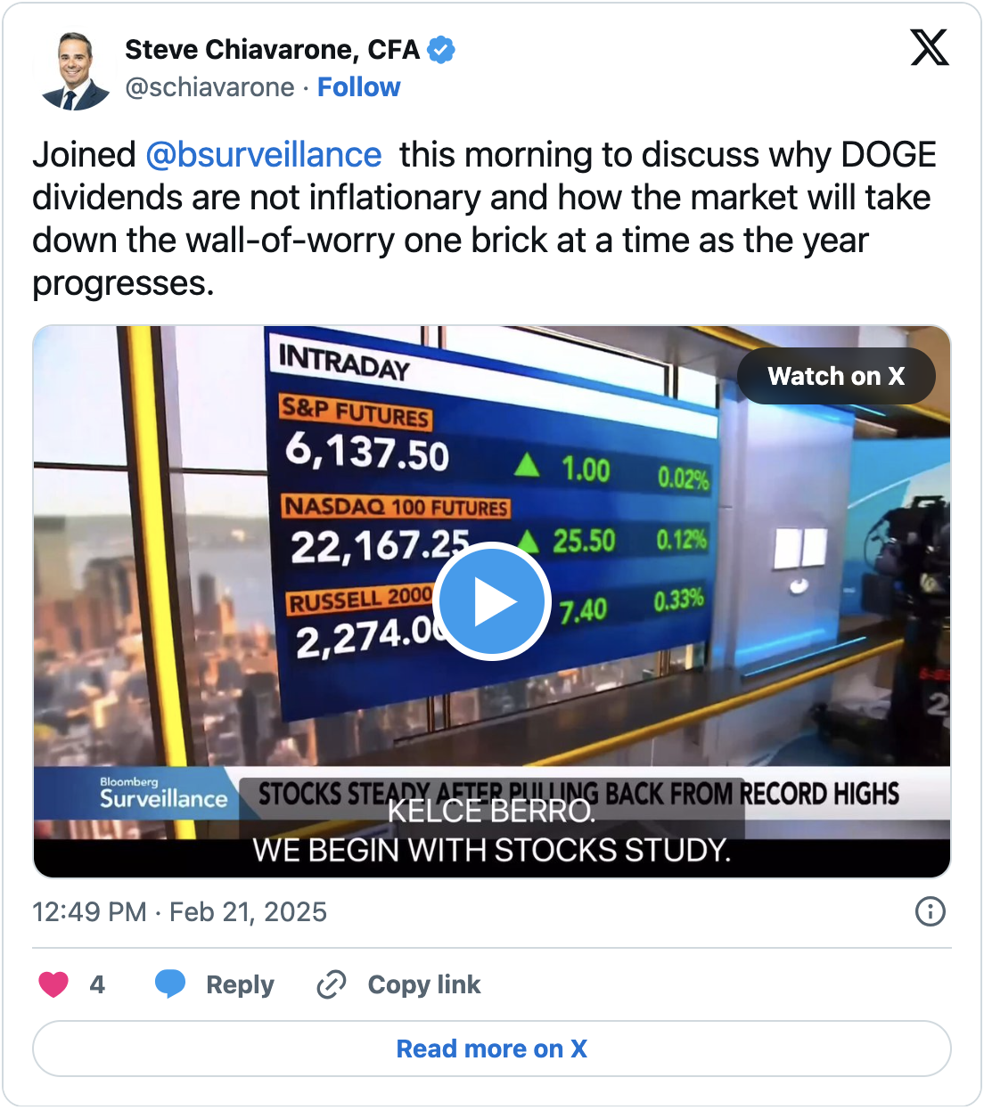 Steve Chiavarone of Federated Hermes underscored this on Bloomberg TV Friday, explaining why DOGE dividends won’t be inflationary.
