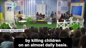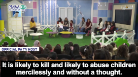 Host: “You know how the occupation behaves. It is likely to kill and likely to abuse children mercilessly and without a thought. Therefore, there must be an adult with us… Our rights [in the Convention on the Rights of the Child] are being violated - the right to life, the right to protection... Unfortunately, dear children, [the fact that] these rights are being violated does not reach the world… They don’t know that the Israelis are violating the right to life by killing children on an almost daily basis.”