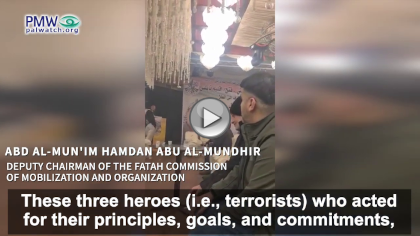 Whichever term the PA uses to call on Palestinians to act against Israel, Palestinian society knows that the “most sanctified” are terrorists and murderers – those seeking to kill Israelis – as PA Chairman Abbas has stressed numerous times. The PA has broadcast the following video dozens of times: