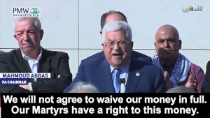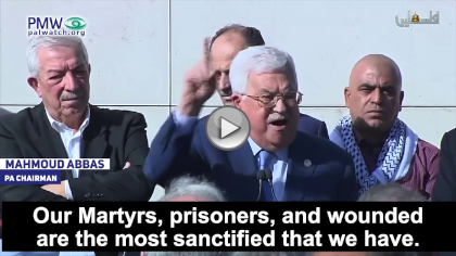 PA Chairman Mahmoud Abbas: "Israel came and said that the Martyrs are criminals, terrorists, and murderers. Shame on you Israel! We will never agree to abandon our Martyrs... Our Martyrs, prisoners, and wounded are the most sanctified that we have. We will not agree to waive our money in full. Our Martyrs have a right to this money."