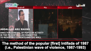 • PA official: “Everyone believes that the model of the first Intifada is the most efficient, strongest, most effective, and perhaps the shortest model in order to achieve the Palestinian people’s rights”