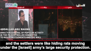 Similarly, official PA Presidential Spokesperson Nabil Abu Rudeina stated that “popular resistance” is the “most effective weapon”: