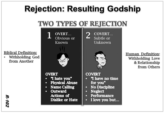 It is an honor to have you as a member of our subscription service! Share today. My Life: My Two EnemiesThere was one time when I was a teen when I heard a ruckus downstairs, assuming one of my relatives was doing their typical pattern of abuse. Murder was in my heart.I want to thank the readers of “My Life, Why the Boy Cried ‘Wolf.’” Our Substack channel, which hosts the End Times Chronicles, the IM Writer's Forum, and the IM Discipleship Tools, has reached 124,277 inboxes within 2023 thus far. We have you to thank for that. I’m told that “My Life” writings have touched many lives - emphasizing my vulnerable confessions. My philosophy is raw is real. Since we get a plethora of positive feedback, we will continue to post them throughout 2024. -Stephen TWO TYPES OF REJECTIONThere was one time when I was a teen when I heard a ruckus downstairs, assuming one of my relatives was doing their typical pattern of abuse. I came down, and I found blood squirting on the walls of our living room. My mother had tried to reach the phone to call for help, and the abuser used that phone to strike her. I concluded that this time, the abuse was serious enough that it demanded a level of protection that was foreign to me. After begging the abuser to stop, I ran out of the house, crawled up onto the hood of the car, and began to jump up and down - hoping for a cat-and-mouse chase, which is what happened. Both of us ended up in a high-speed chase with a personal goal and hope to kill the abuser. While that effort was fruitless, I was able to distract the abuser long enough for my mother to make that call. When I noticed the abuser had turned around to go back home, I drove recklessly to beat him back home by going around the section. To my surprise, he had beat me home, and now, with the sheriff present, he began assaulting the two officers on the scene. With one officer down and him diligently working on the second, I comforted my mother. Thankfully, the officer was able to gain control, and he was arrested. That act of playing God could have killed my relative that night. This later became an act I had to seek forgiveness. Even though in my mind I was justified to have murder in my heart, it did not make it right. I have replayed that night over and over again in my mind, trying to determine what the most honorable thing I could have done. The only resolution I have come to would have been to take the beating for my mother. There are only two types of rejection.The first is overt, and the second is covert. Overt rejection is obvious or known rejection by both parties involved. This can be physical abuse, like the above story, name-calling, statements of hate, or simply acts of revenge –all of which occurred that night. The next form of rejection is covert, subtle, or unknown to one or both involved. Instead of “I hate you” comments, it is displayed in little time spent with those that you supposedly love. It can be no discipline, neglect, or performance-based acceptance – “I love you if…” The Biblical definition of rejection is “withholding God and/or love from another.” If the person does not know God or minimally has no relationship with Him, is not aware that they are withholding God from the other party, thus resulting in simply withholding “love” from the other. In any case, some people do this overtly, while others are more subtle about their withholding love, and this is to avoid the guilt over the rejection extended. One of the more classic forms of covert rejection is when one person greets another; they are nice, sweet, and full of smiles of acceptance, but when they have their first opportunity to gossip about person two – they do. If a person is confronted about the gossip, they typically will lie or rearrange the story to justify their rejection. Another common covert form is spoiling children. Parents “love” their children so much that they indulge the child, which results in the child forming a playing God that is demanding and expectant of special privileges. Here is an example: A few years into my marriage, after being informed as to the dynamics of rejection, I asked my wife what ways her parents had rejected her. To my surprise, she said that her parents didn’t reject her, and she has no memories of such rejection. Even though I carry an enormous amount of respect and honor for her parents to this day, they quickly admitted that they did not provide enough discipline for their beloved Janie. The truth being stated, she was rejected whenever they avoided a confrontation with her, particularly when it came to discipline. This carried over into our marriage, for each time I was immovable in fronting her with truth, she felt overtly rejected by me. You see, those who have been covertly rejected growing up frequently feel overtly rejected by those who hold to a strong form of fronting truth with others. A person who is rejected usually has inward and outward reactions. The diagram below is a list of the inward reactions. It doesn’t matter if the person comes from an overt or covert rejection past – many items in this list can be found. In my undergraduate studies, we were asked to do a paper on our life story. Mine was titled “Why the Boy Cried Wolf.”Throughout my childhood, I was known by my siblings and most likely others as the boy who cried wolf, a childish term was being a “tattle tale.” I spent so much of my young life “tattling” on my siblings, thinking it would protect me from their rejection. Little did I realize at the time – it made it worse. Since I felt many of the items listed in the above diagram, I truly believed that no one protected me outside of my mother, and this, of course, would be the person I tattled to. In the meantime, my siblings grew to dislike me more and more as time passed. Then, when my siblings would demonstrate further acts of rejection, I believed it to be proof to justify my inward reactions to 